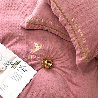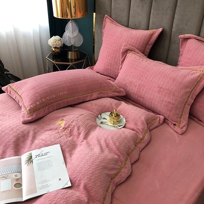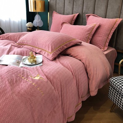 进口高端牛奶绒床上四件套加厚保暖被套双面珊瑚绒冬季千鸟格床品