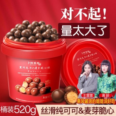 桶装怀旧黑巧克力夹心麦芽脆心球零食朱古力糖果送儿童
