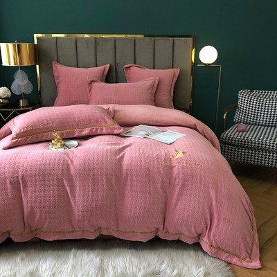 进口高端牛奶绒床上四件套加厚保暖被套双面珊瑚绒冬季千鸟格床品